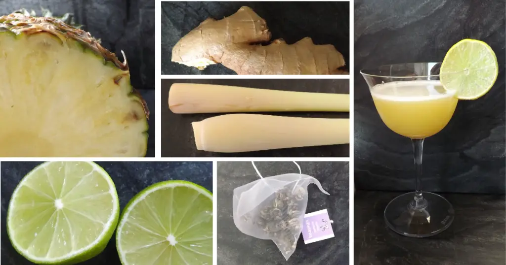 The fragrant aroma of lemongrass, jasmine and ginger adds a nuanced depth to the familiar tropical sweetness of pineapple in this delicious alcohol-free pineapple and lemongrass martini.